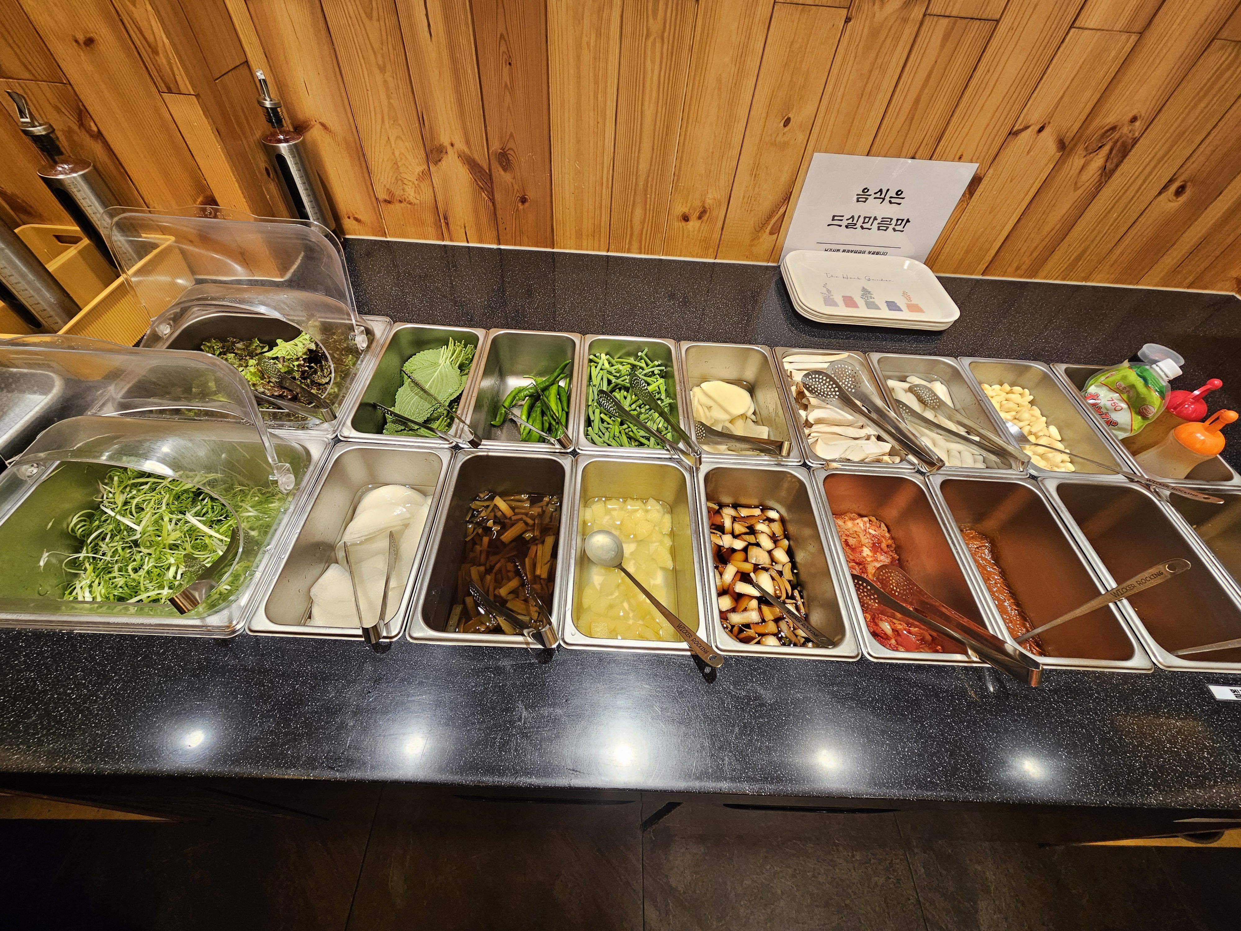 푸드코트에 야채들이 있어 양껏 가져다 먹을 수 있었어요.