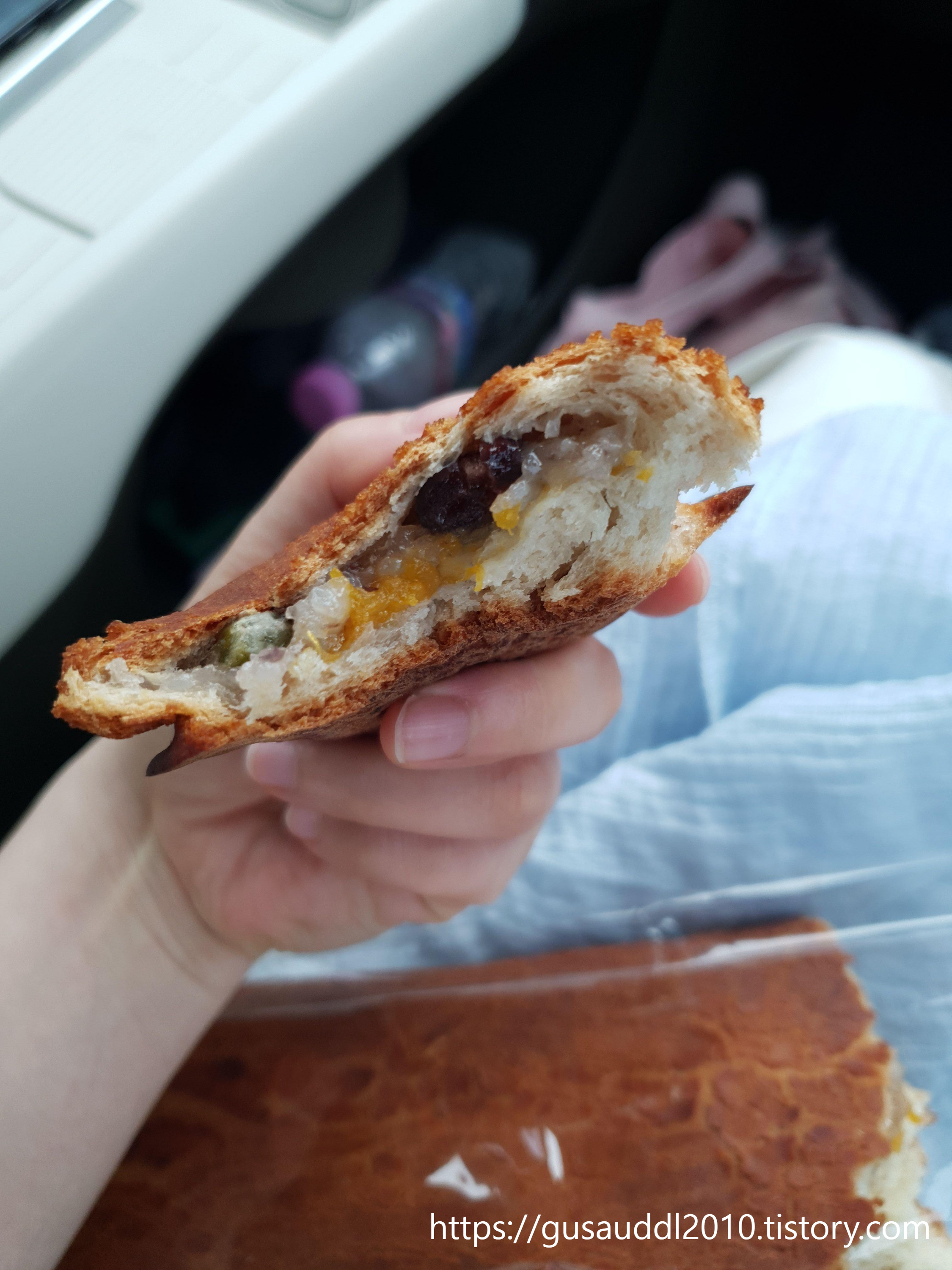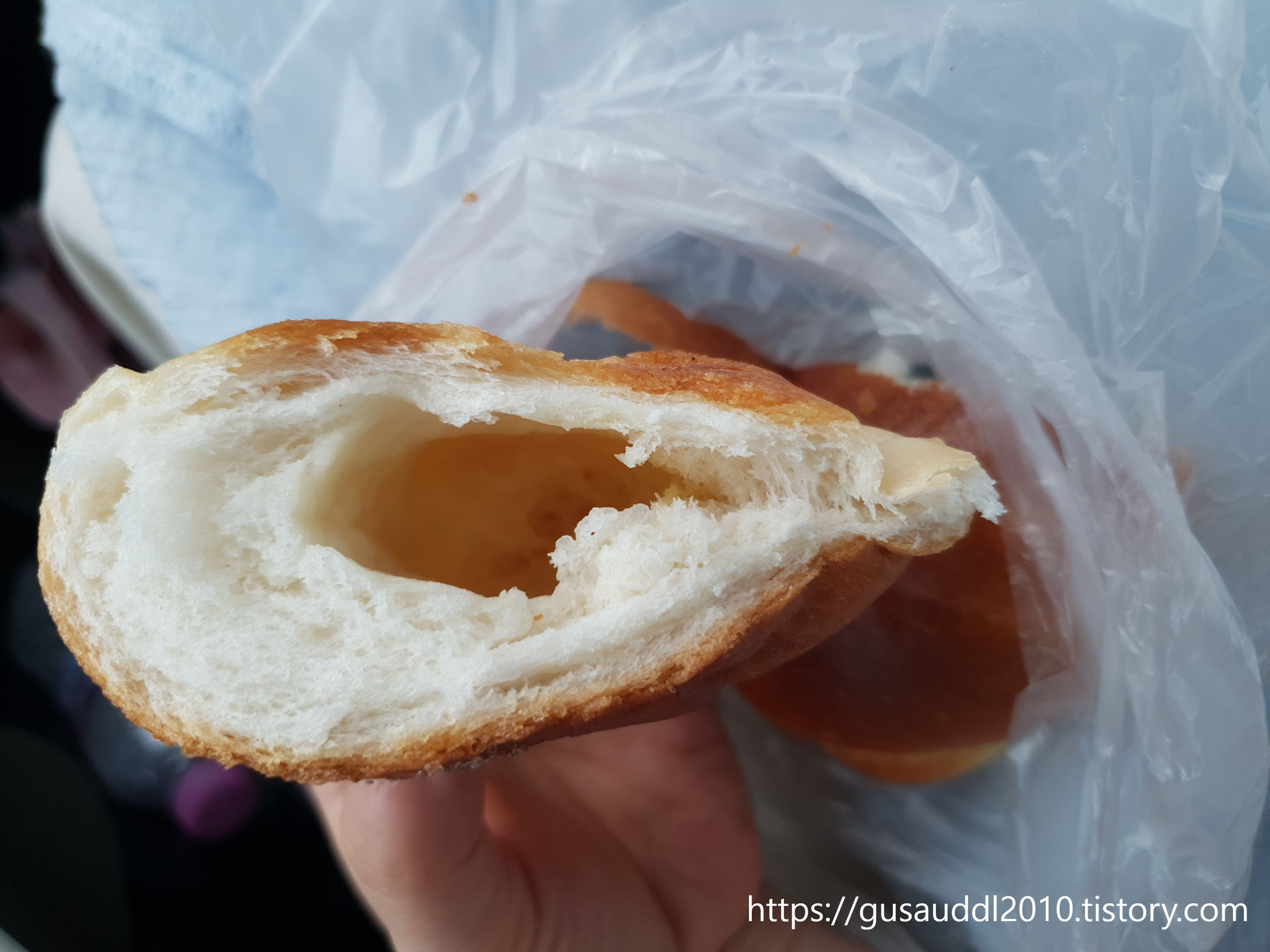 바게트는 간식보다 식사 대신 먹어도 될 정도로 쫄깃하고 떡도 알차게 속이 들어있었습니다.